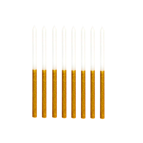 VELA PALITO GLITTER DOURADO (8 UNIDADES)